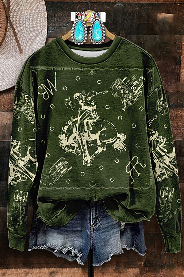 Retro Distressed Boots Stitched Printed Sweatshirt
