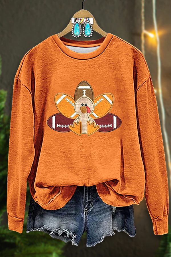 Thanksgiving Turkey Football Print Sweatshirt