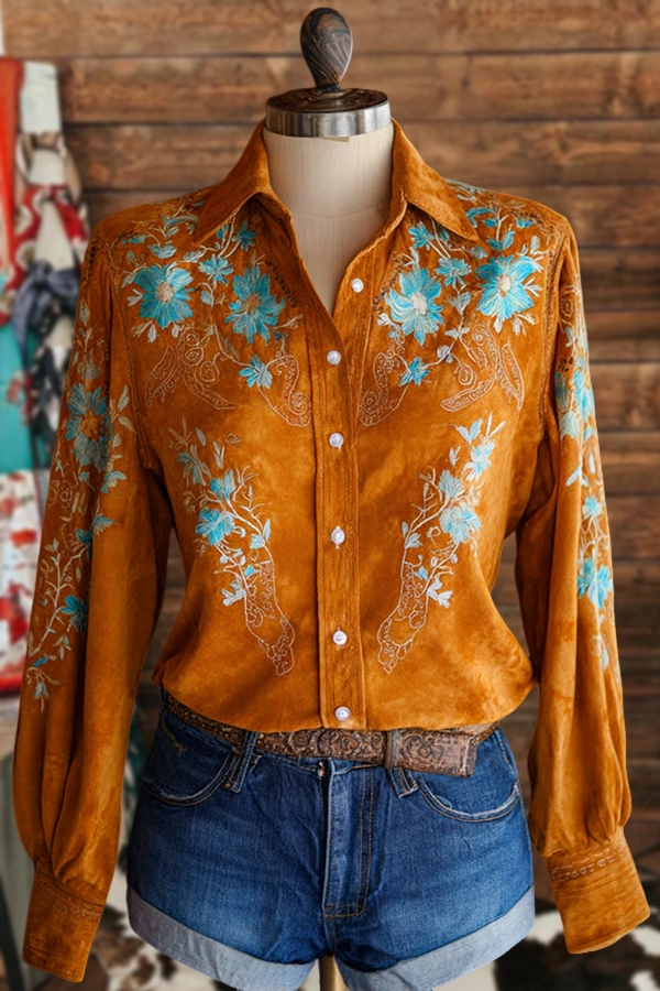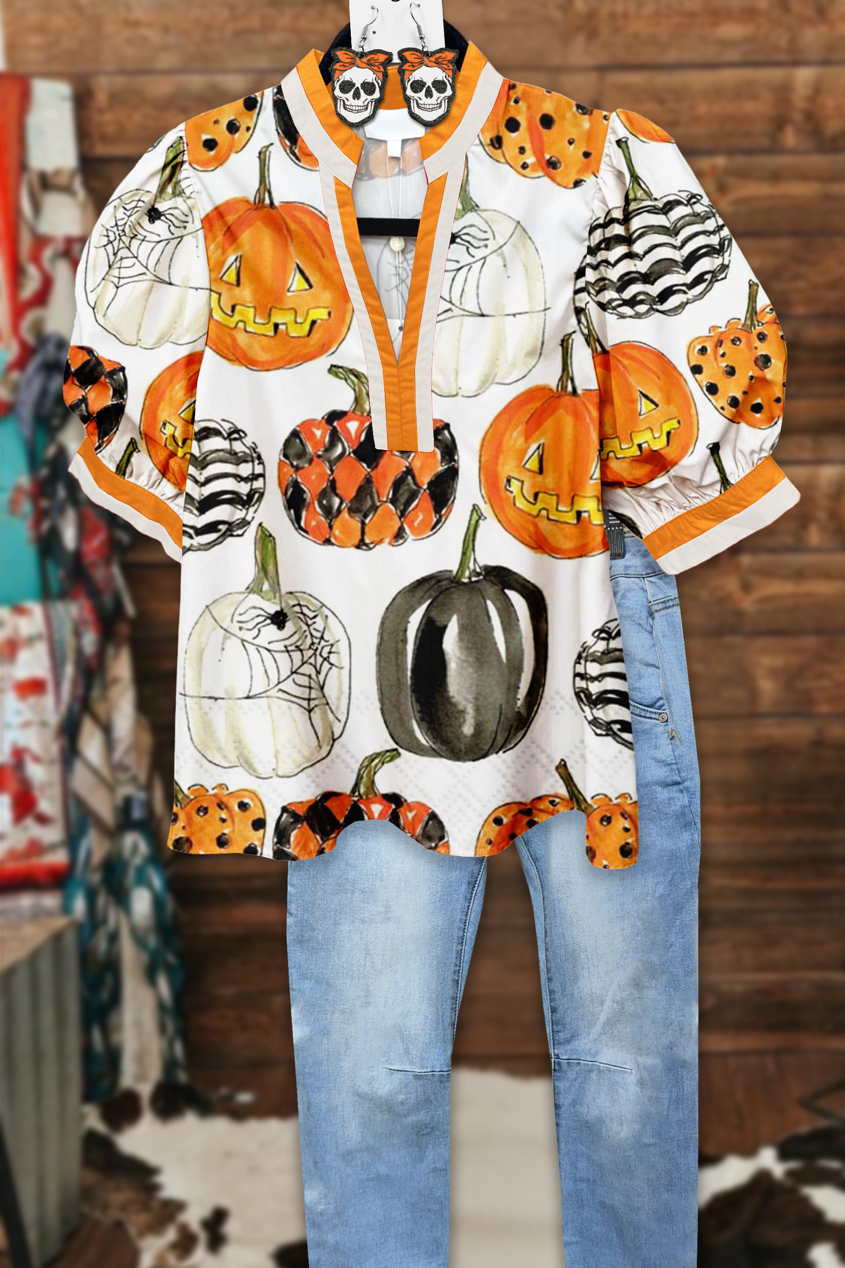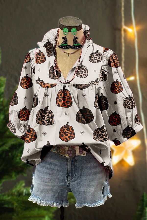 Vintage Halloween Pumpkin Puff Sleeve Blouse