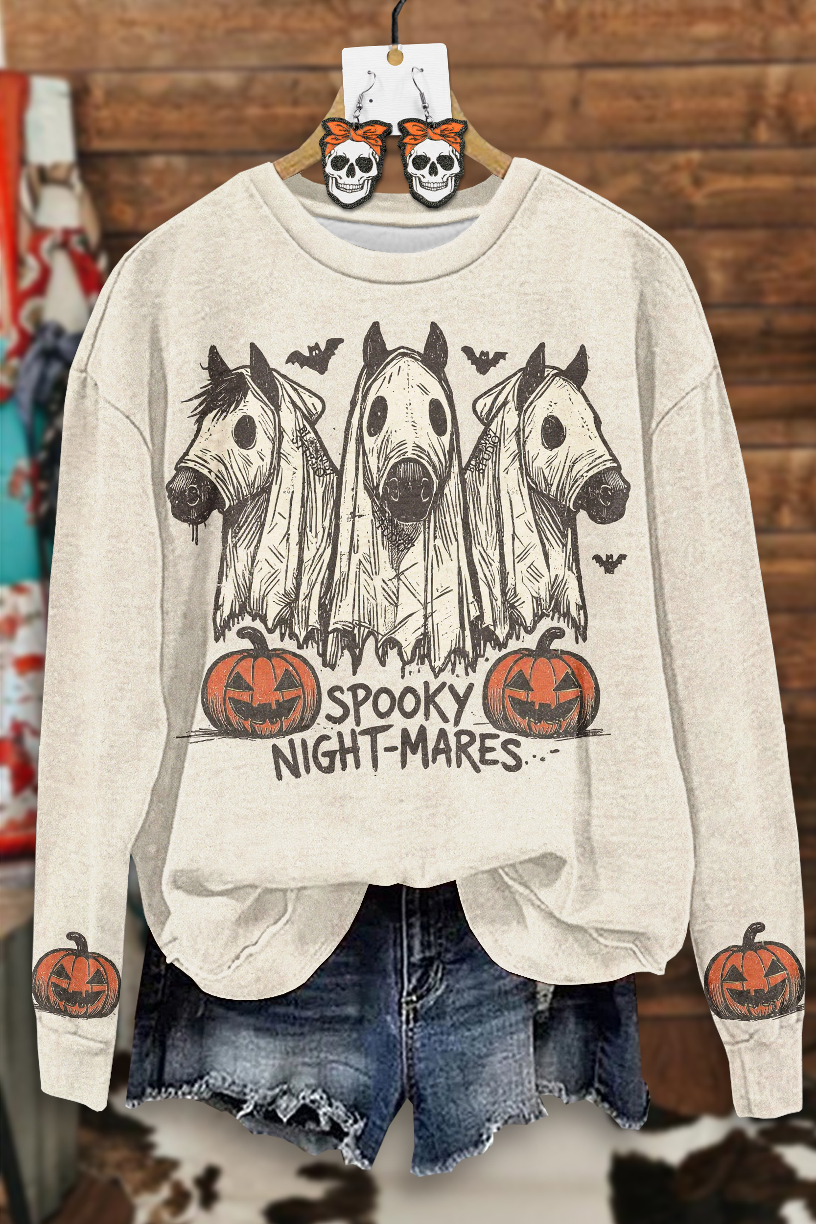Vintage Halloween Horse Ghost Pumpkin Sweatshirt