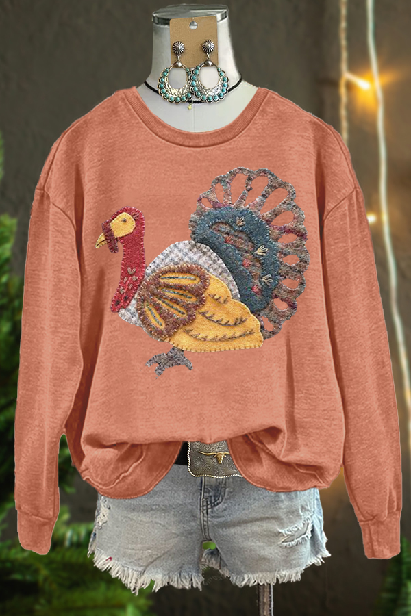 Vintage Colorful Turkey Pattern Sweatshirt