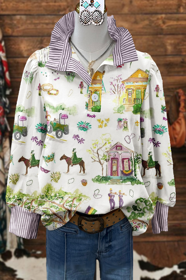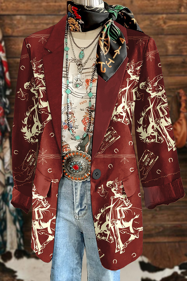 Western Boot Stitch Print V-Neck Flying Sleeves Blouse