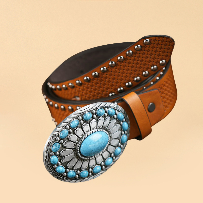 Retro Western Cowboy Turquoise Heavy Engraved Belt