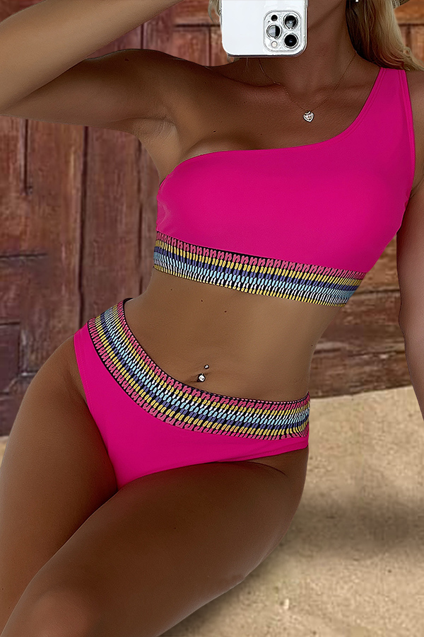 Sexy Printed One Shoulder Two-piece Swimsuit