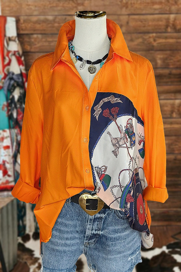 Western Horse Patchwork Long Sleeve Shirt