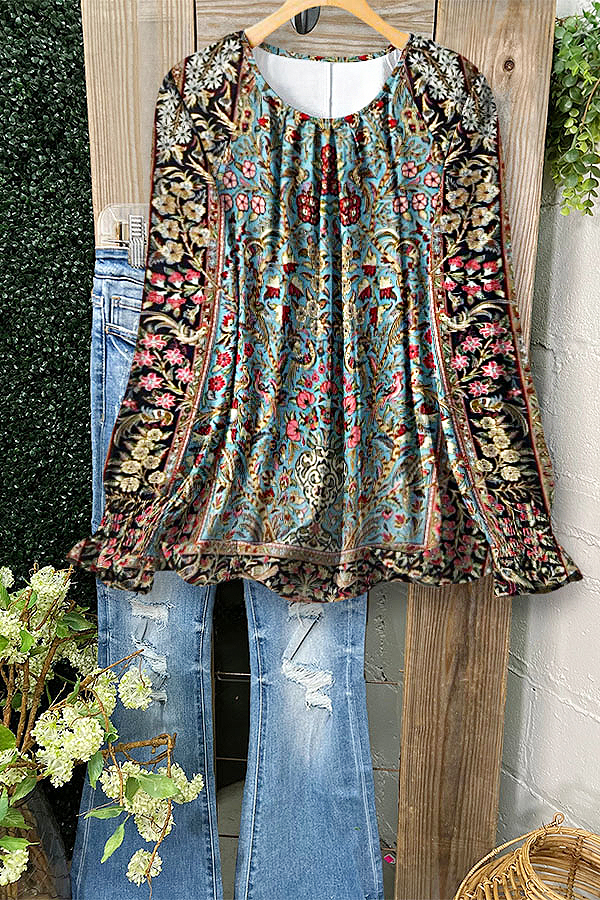 Vintage Loose Floral Long Sleeve Pullover