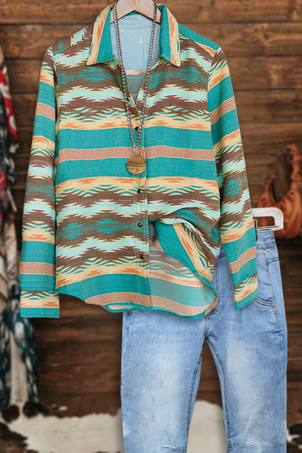 Casual Colorful Geometric Button-Down Shirt