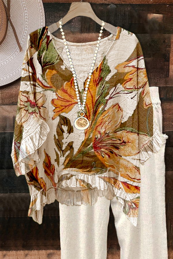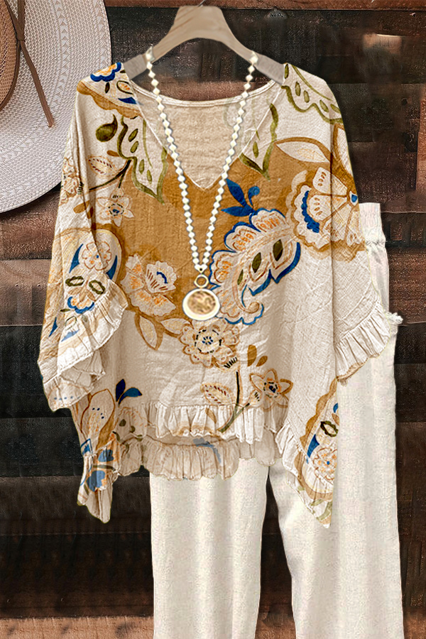 Classic Botanical Print Puff Sleeve Blouse