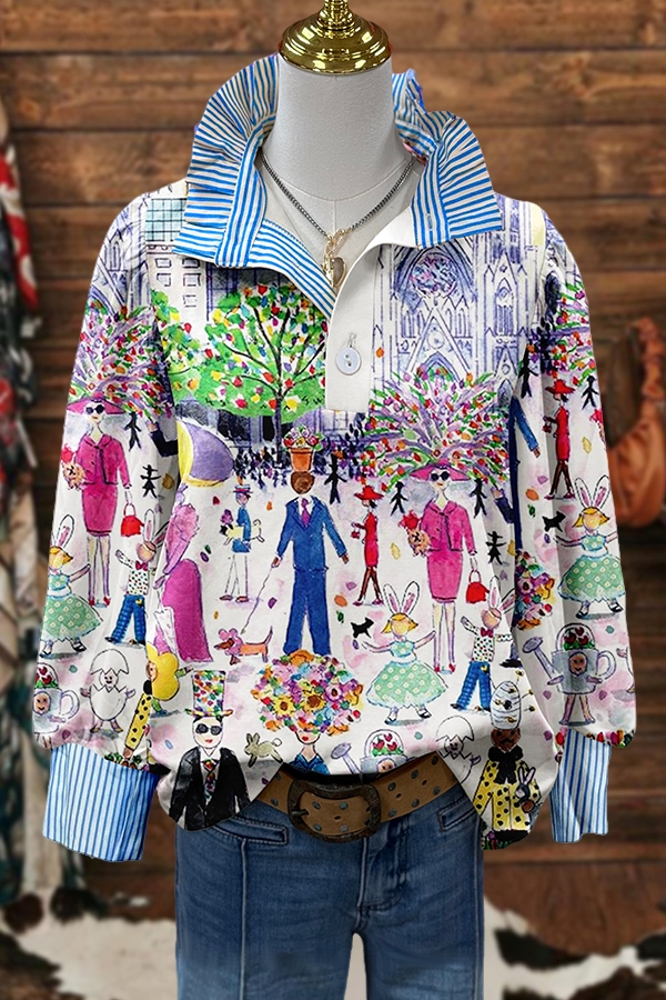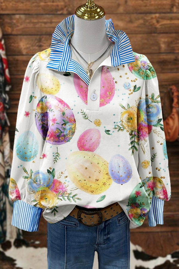 Easter Flower Egg Striped Ruffle Blouse