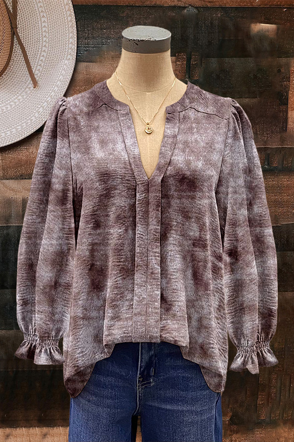 Unique Abstract Print Puff Sleeve Blouse