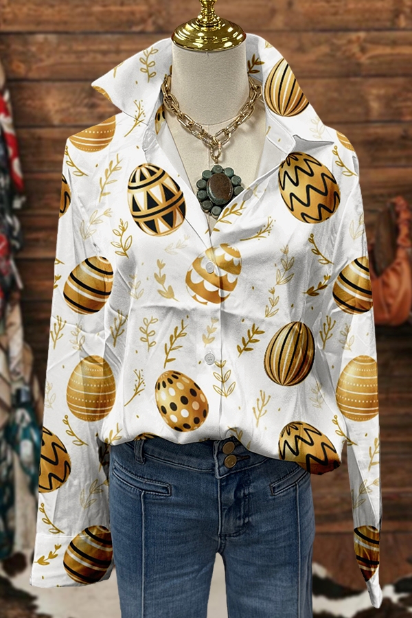 Classic Easter Egg Print Puff Sleeve Blouse