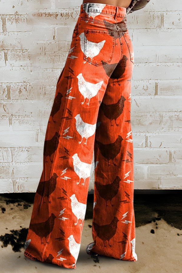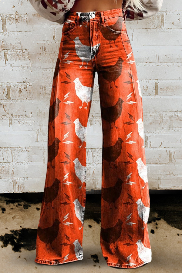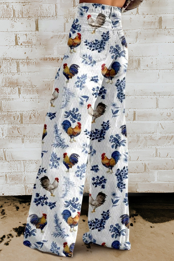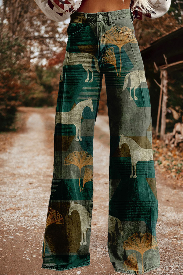 Women's Vintage Print Casual Wide Leg Pants