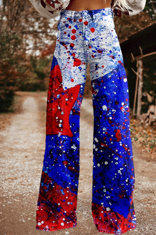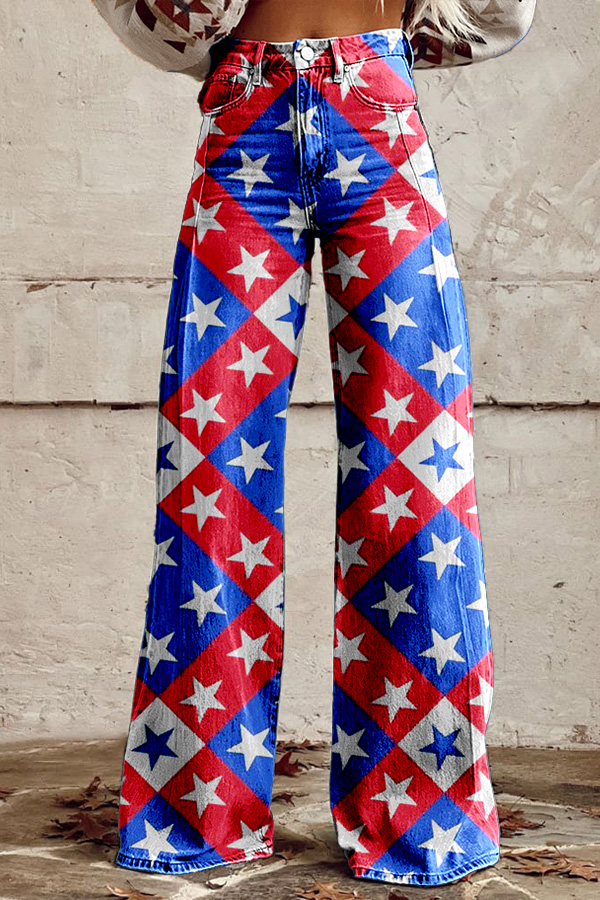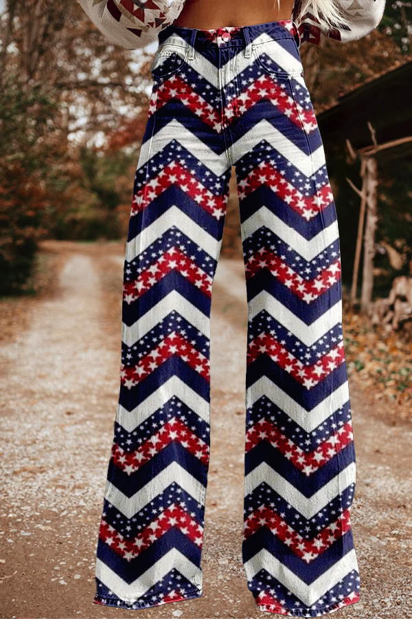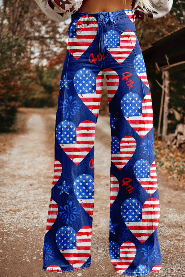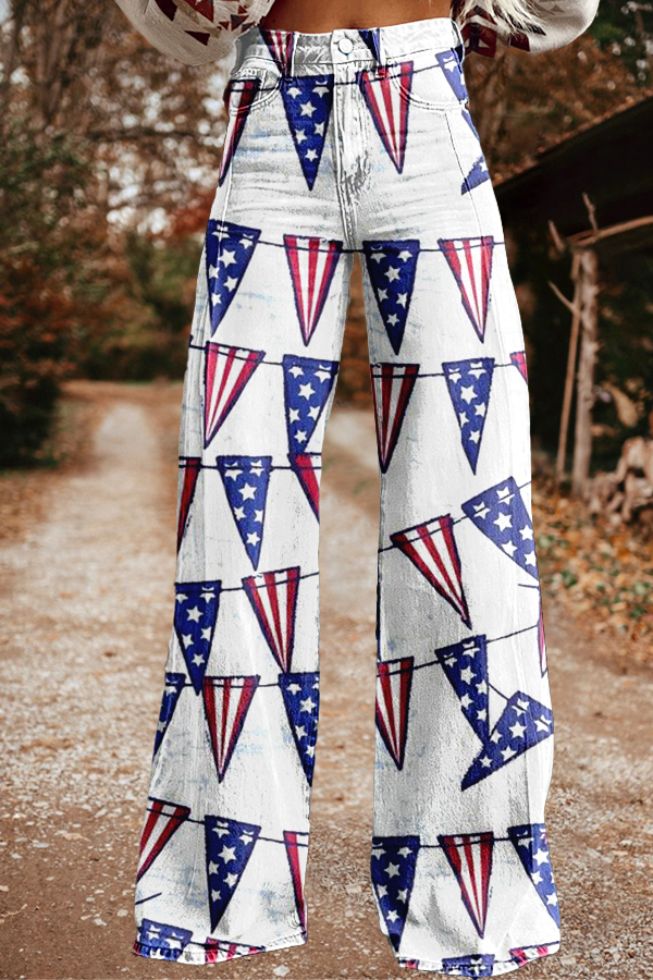 Chic Patriotic Day Print Wide Leg Pants