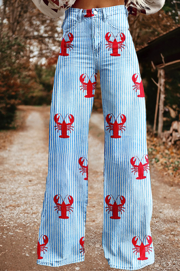 Classic Independence Day Stripe Print Wide Leg Pants