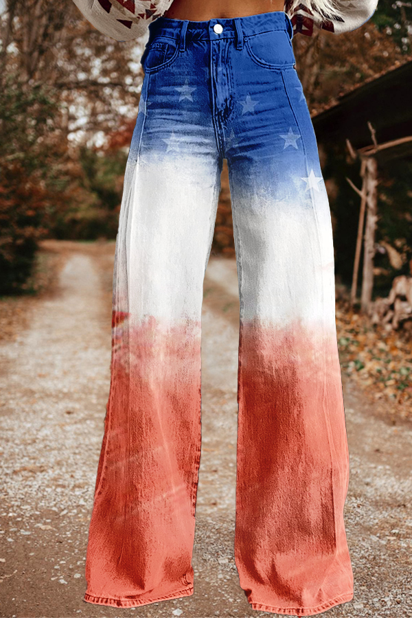Classic American Flag Ombre Print Wide Leg Pants