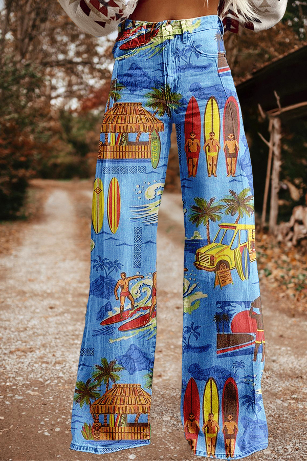 Casual World Oceans Day Print Wide-Leg Trousers