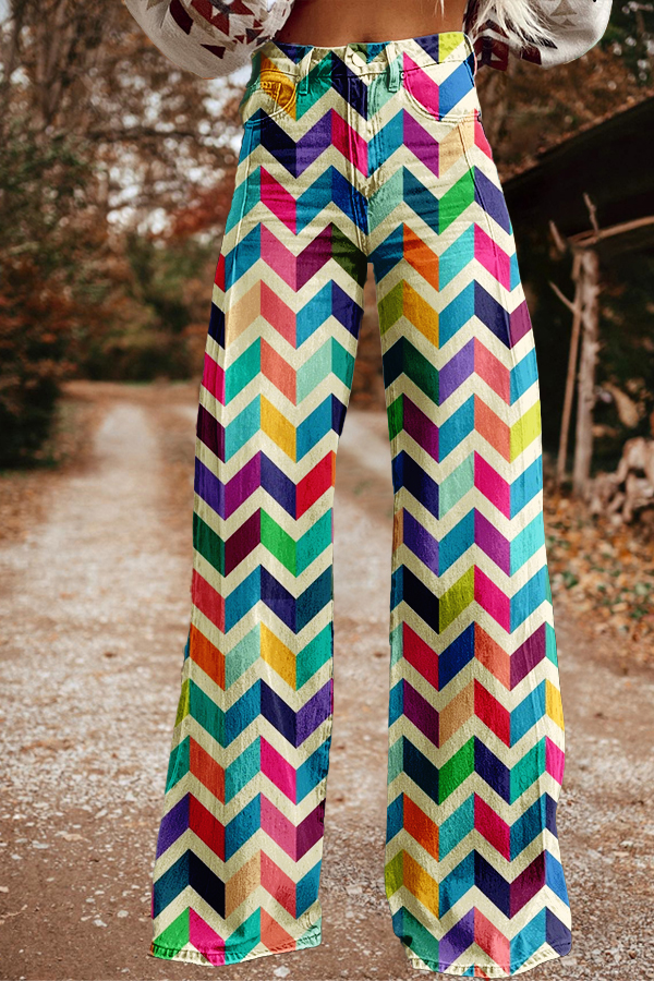 Vintage Western Arrow Print Wide Leg Trousers