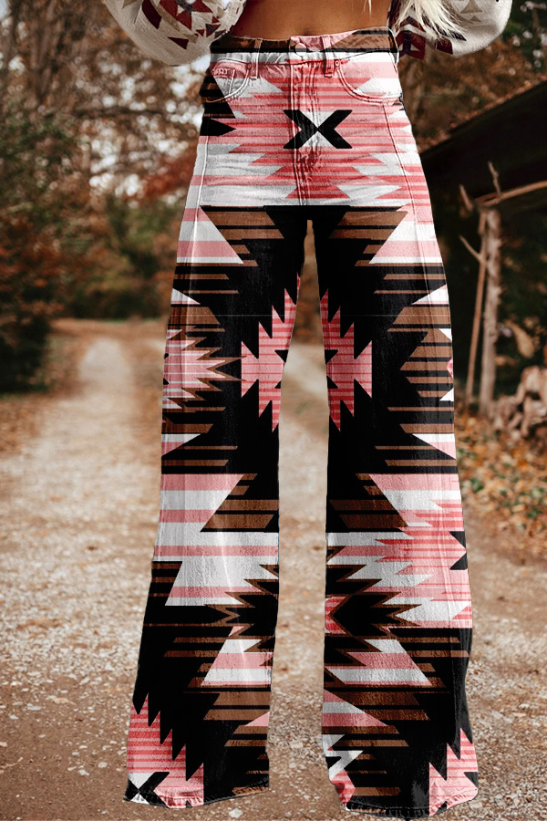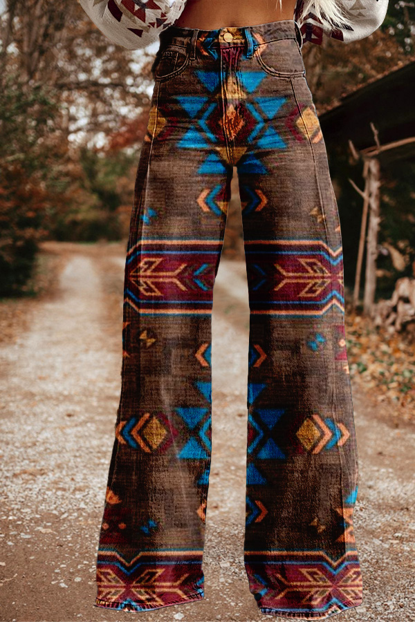 Retro Western Aztec Print Wide Leg Trousers