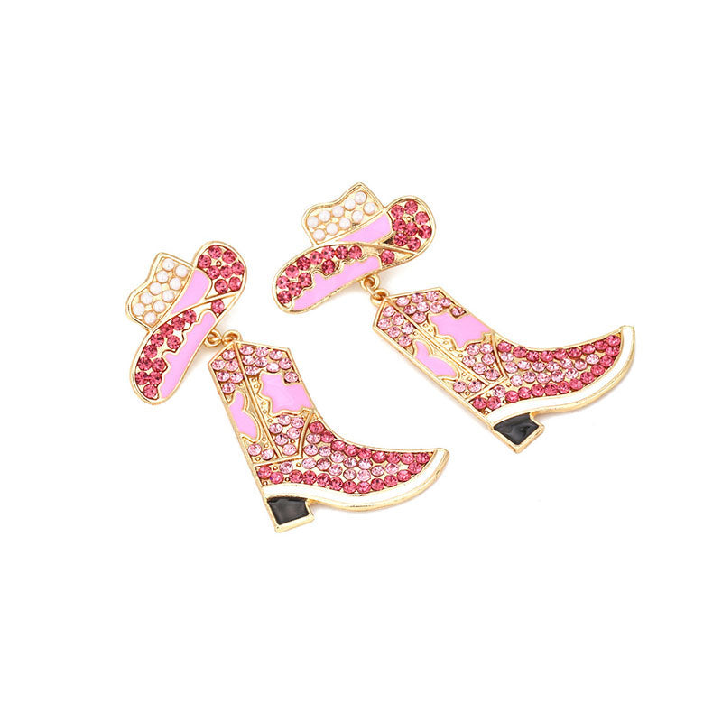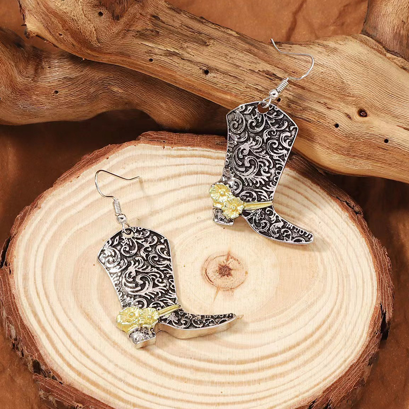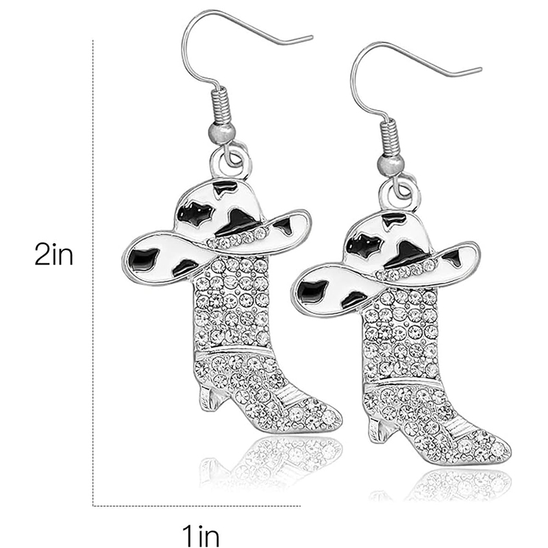 Western Cowboy Cow Pattern Hat Boots Earrings
