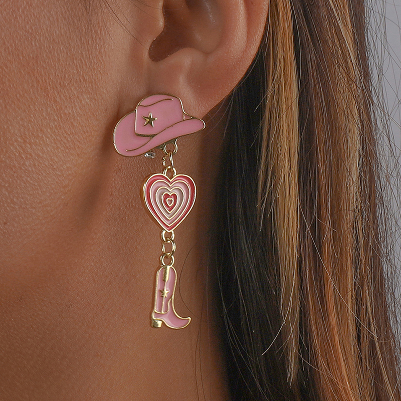 Stylish Alloy Cowboy Hat Boots Asymmetric Earrings