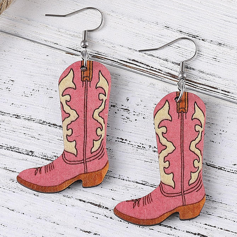 Western Cool Cowboy Hat Boots Wooden Earrings