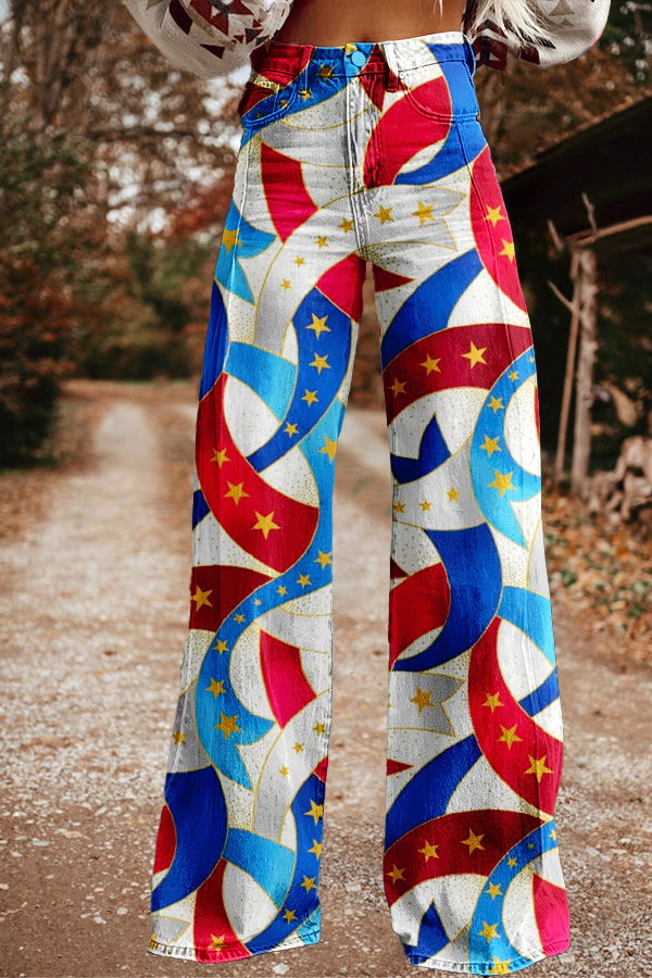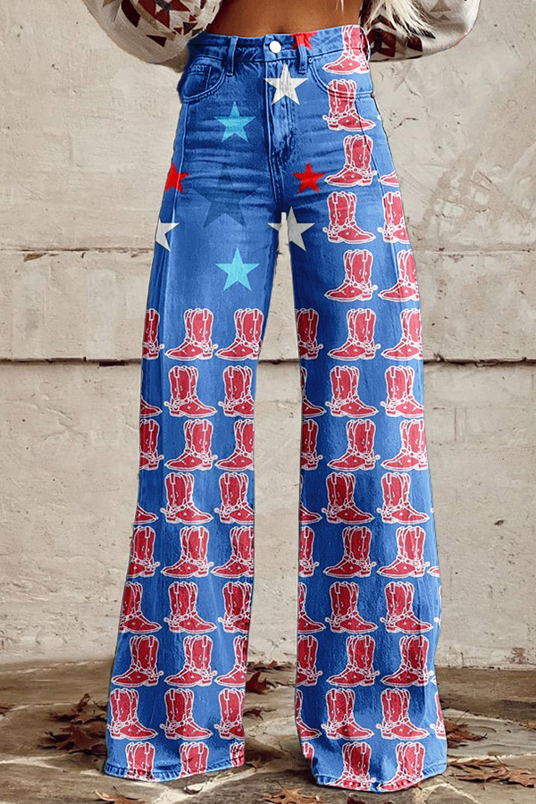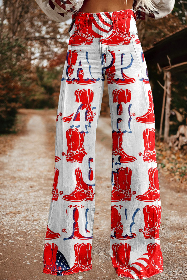 Patriot Day Star Boot Print Wide Leg Pants