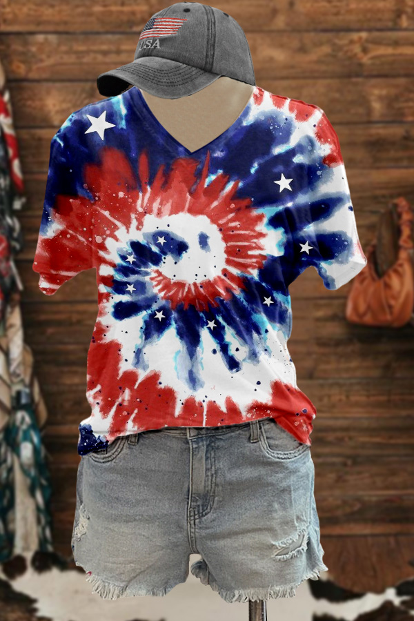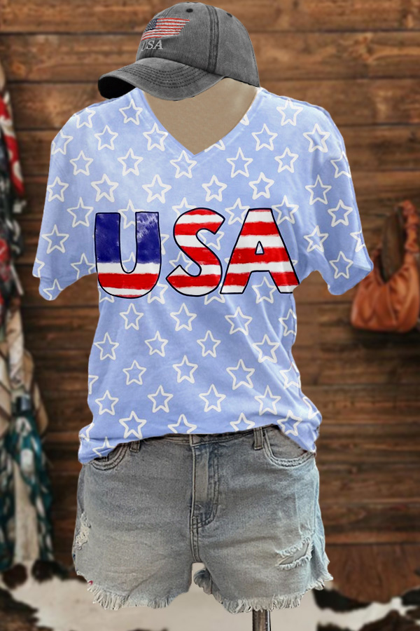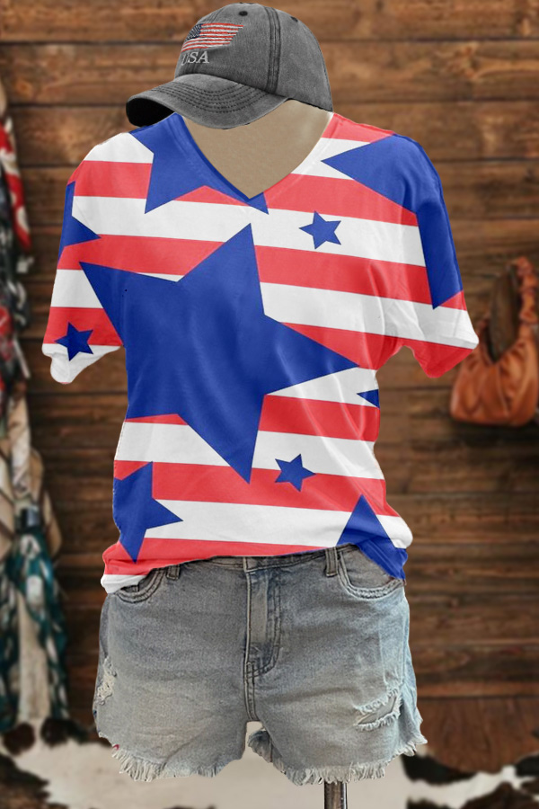 Stylish USA Stars And Stripes National Flag Print Tee