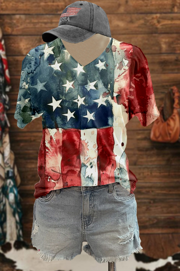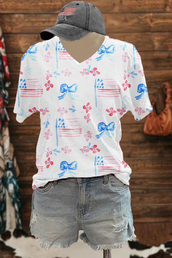Classic American Flag Bow Print T-Shirt