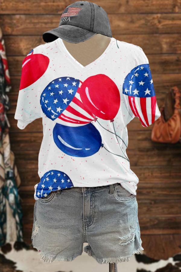 Chic Patriotic Day Print Puff Sleeve Blouse