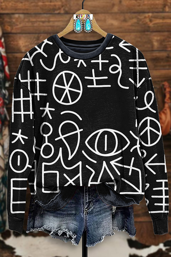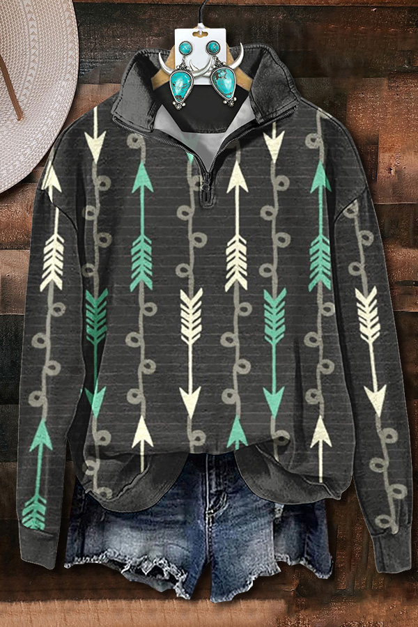 Retro Western Aztec Arrow Print Zip-Up Sweatshirt