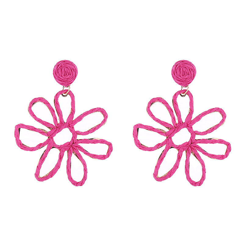 Pink Football Checkerboard Hollow Heart Earrings