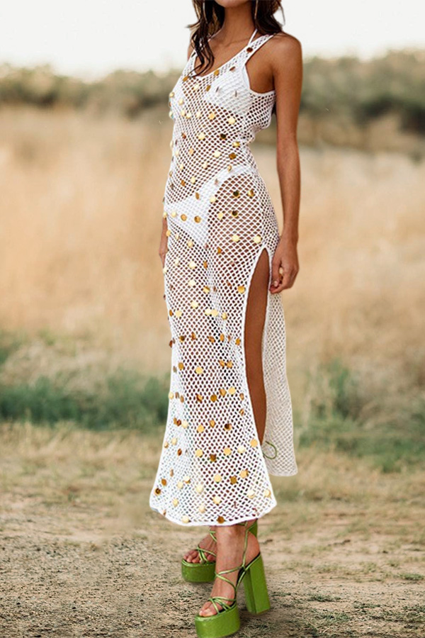 Vintage V-neck Slit Long Sleeve Maxi Dress