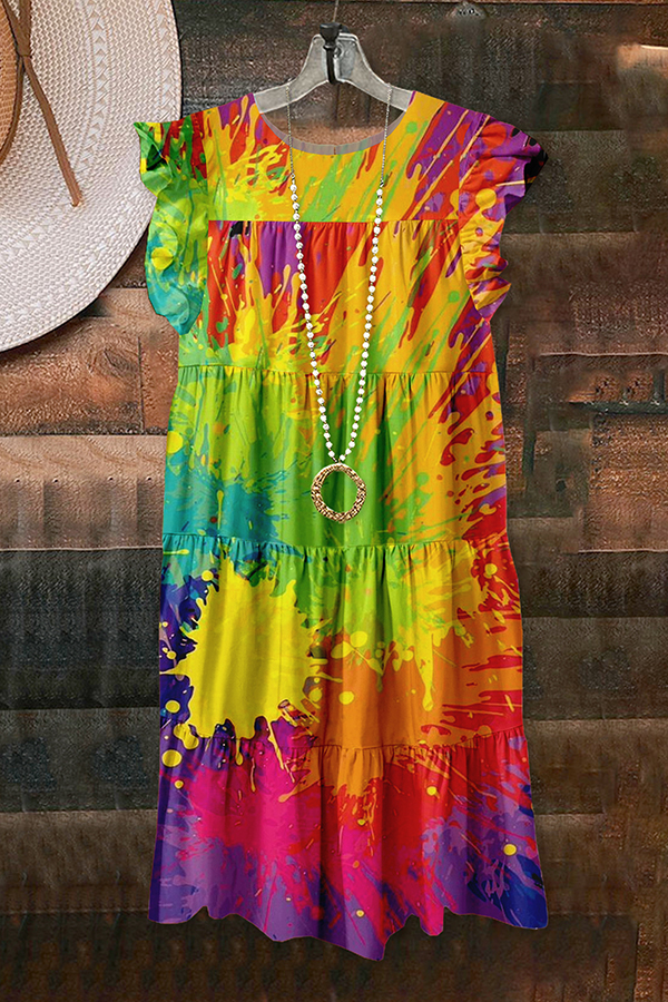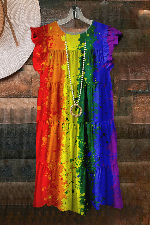 Pretty LGBTQ Rainbow Stripe Print Ruffle Dress
