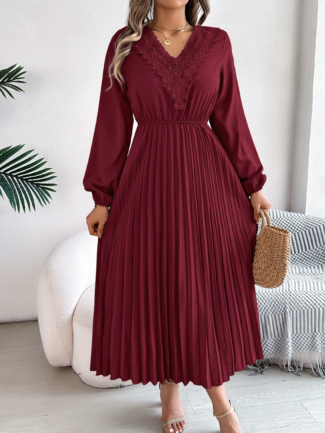 Classic Lace Patchwork Solid Color Dress