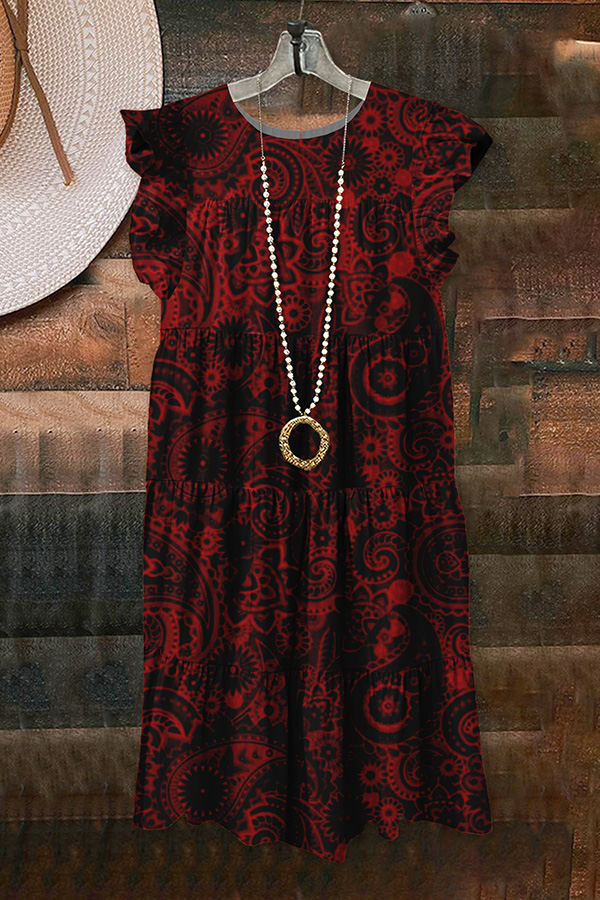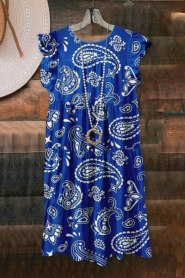 Cute Mardi Gras Floral Print Ruffled Pleated Dress