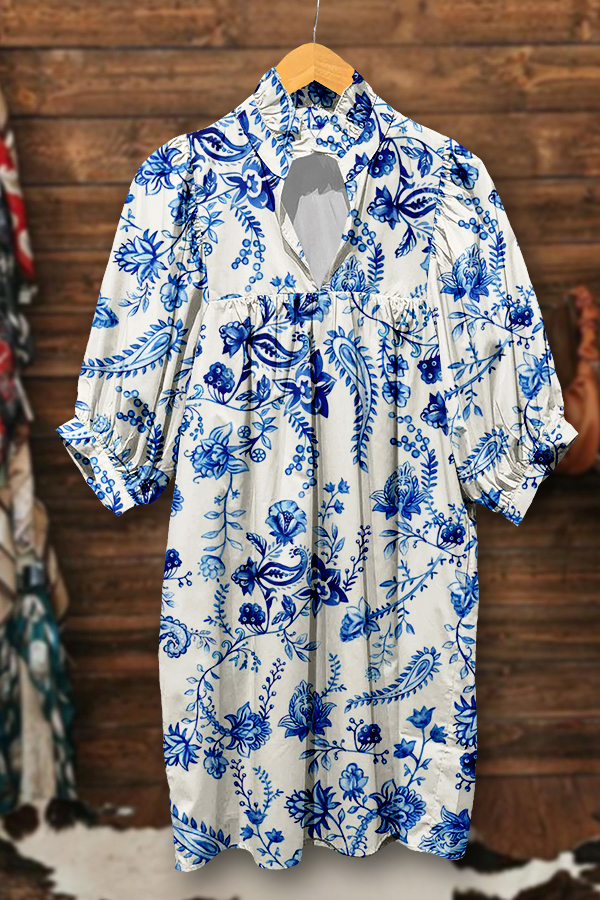 Cute Pastoral Stitching Floral Print Ruffled Pleated Dress