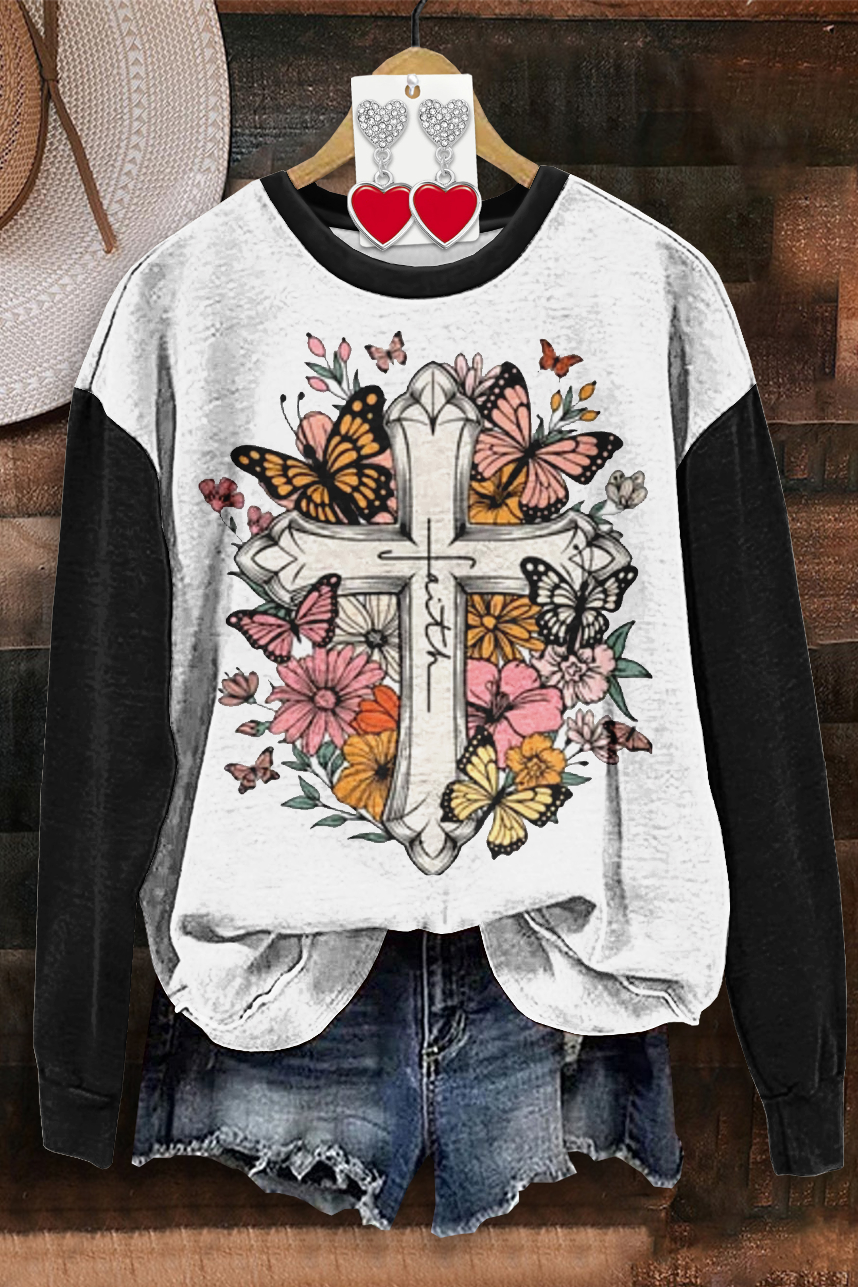 Vintage Distressed Print Long Sleeve Sweatshirt