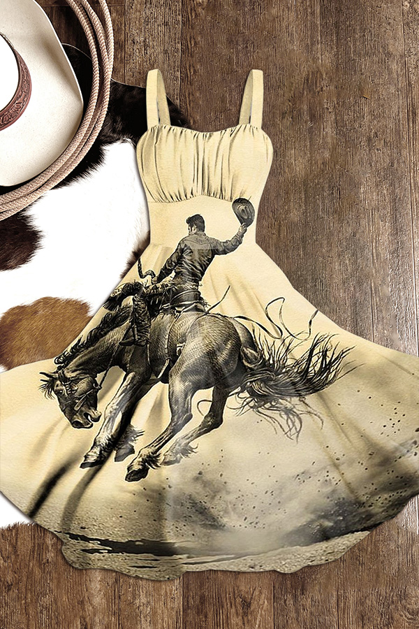 Women's Vintage Rodeo Riding Cowboy Art Print Dress