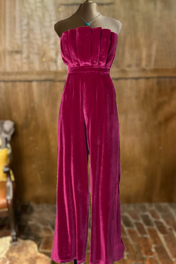 Soft Pleated Velour Sleeveless Jumpsuit