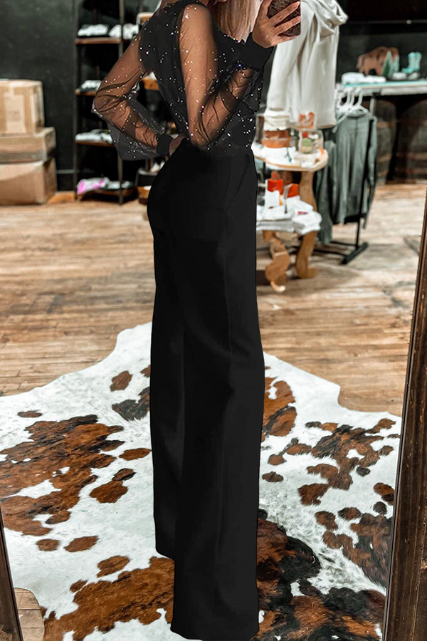 Shiny Sleeveless Halter Neck Sequined Jumpsuit