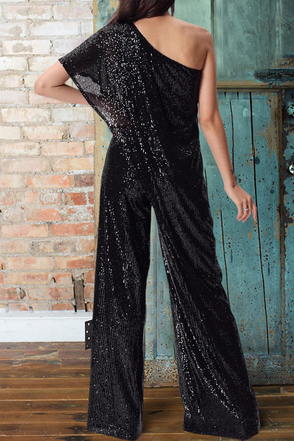 Beautiful One Shoulder Sequined Pleated Jumpsuit