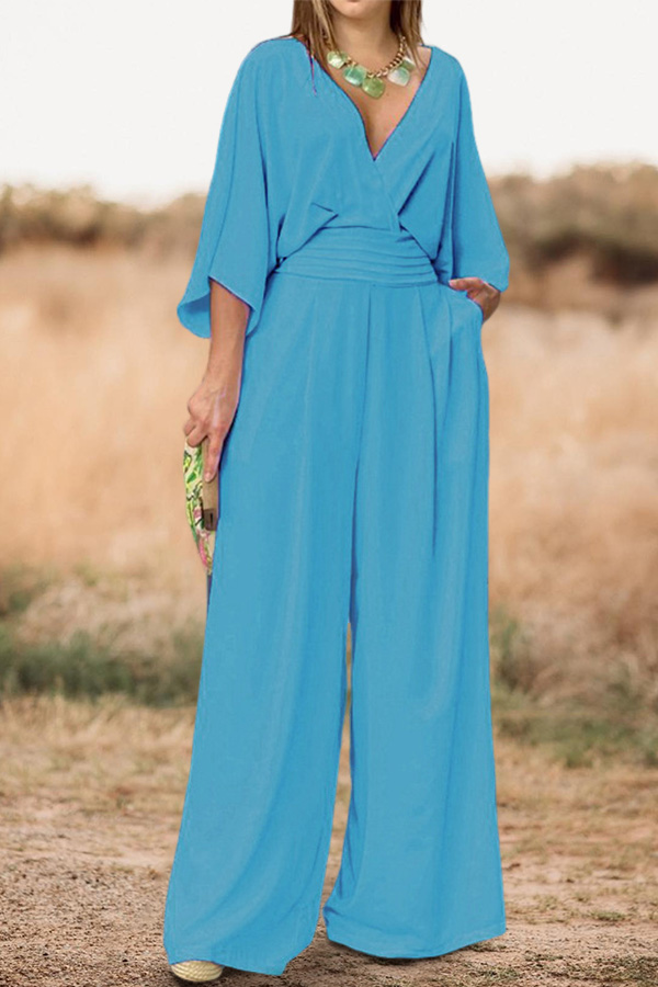 Casual Romantic Floral Ruched Pocket Jumpsuit