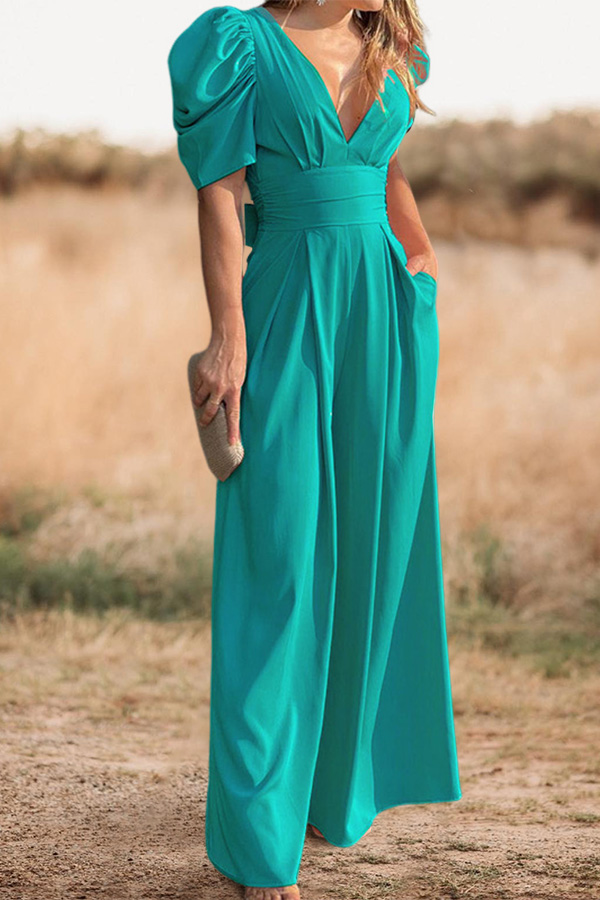 Western-Style Draped Floral Ruffled V-Neck Jumpsuit