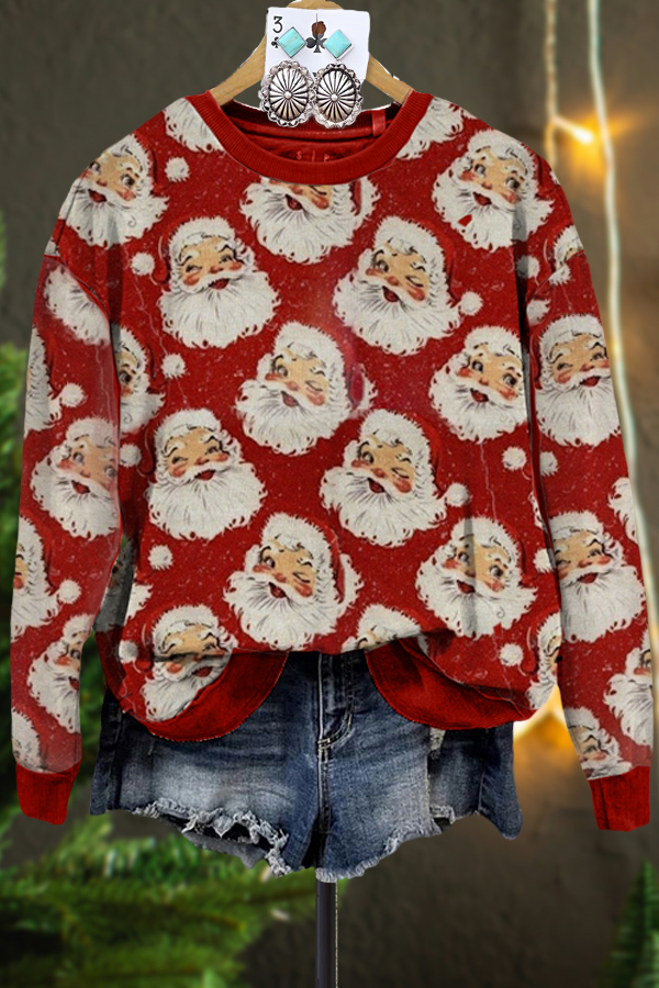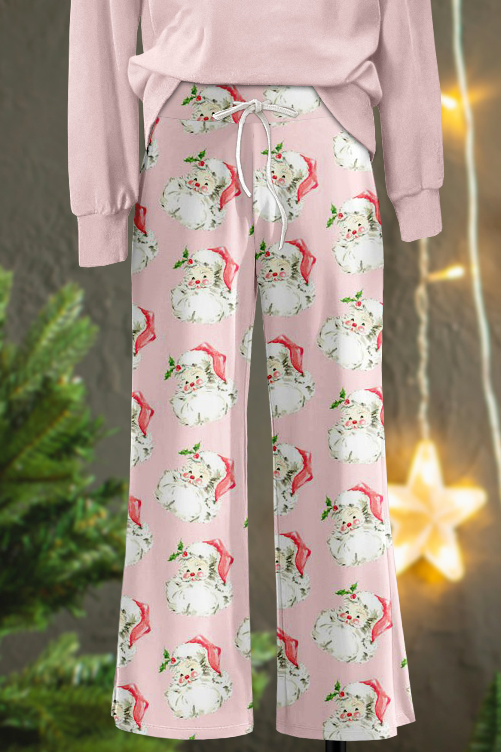 Sweet Christmas Santa Claus Printed Wide Leg Pants