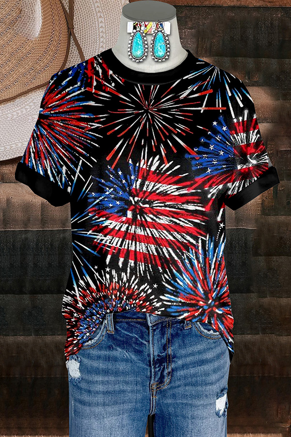Cozy Floral Patriotic Day Washed Dolman Sleeve T-shirt