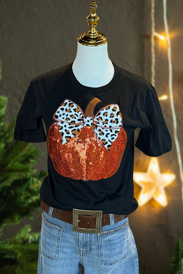 Halloween Leopard Print Pumpkin T-Shirt