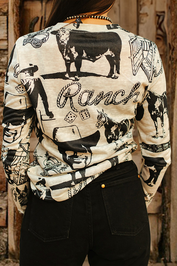 Retro Western Cowboy Washed Dolman Sleeve T-shirt