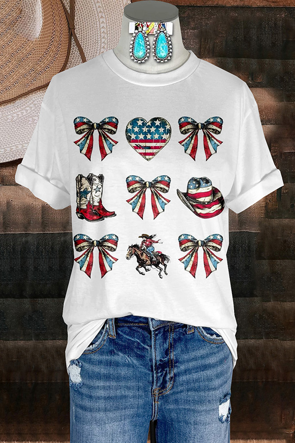 Vintage Western Stitched Boots Print T-Shirt