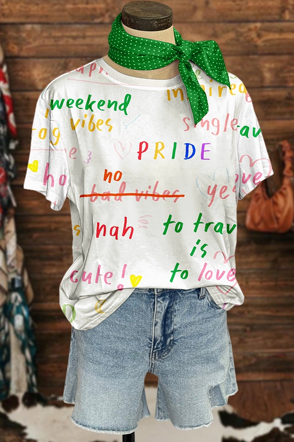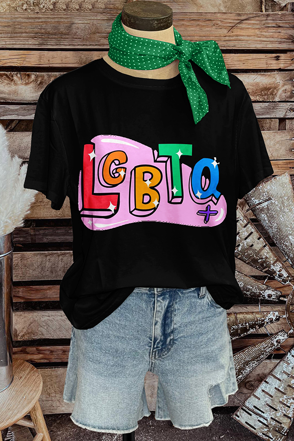 Cute Pride Month Lettering Printed T-Shirt