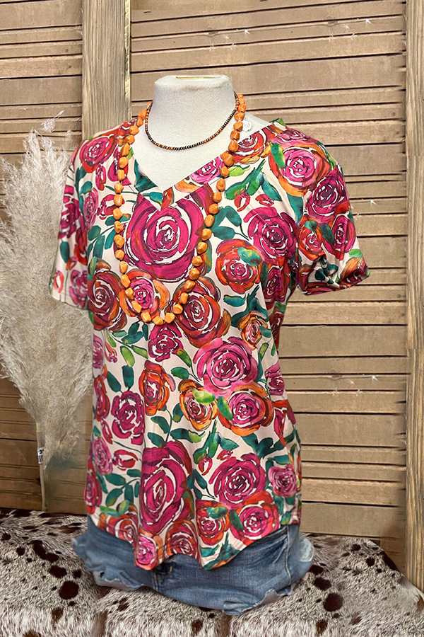 Cozy Floral Washed Dolman Sleeve T-shirt